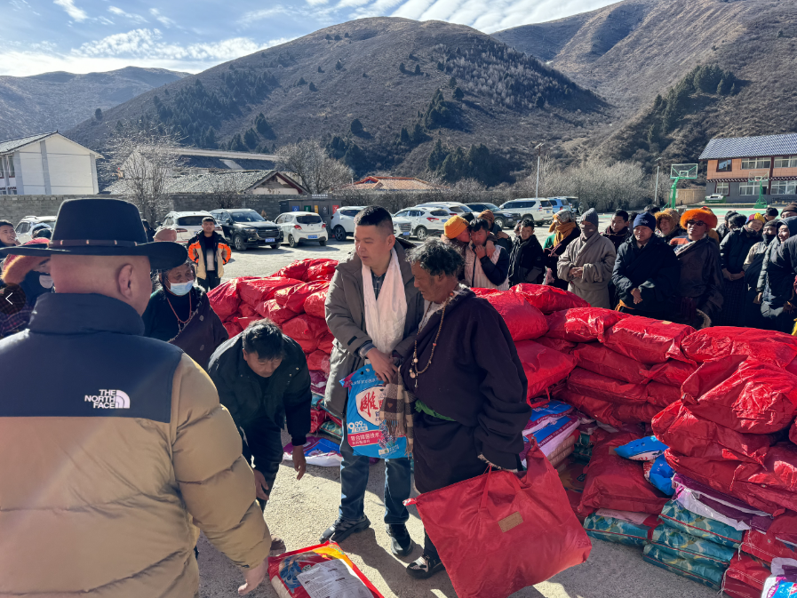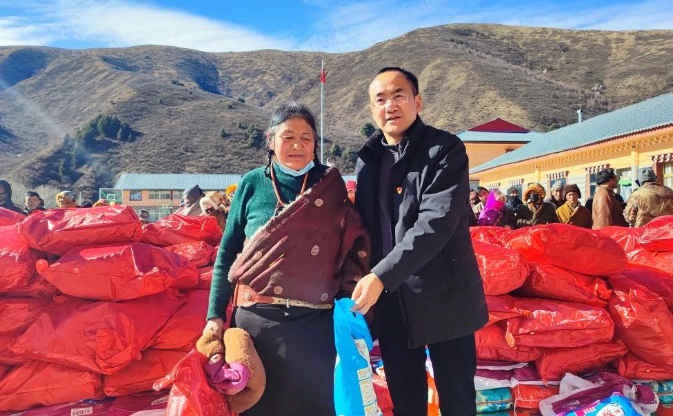 同時通過色達縣水利局向桑桑、德瑪、查啟三村“民族團結進家庭”96戶牧戶及脫貧戶60戶,共計156戶家庭捐贈生活物資(包含毛毯、大米、洗衣粉)各一套。